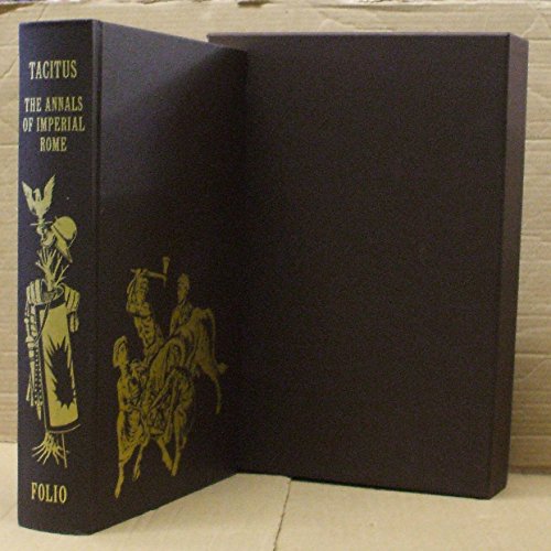 The Folio Society reproduction of The Annals of Rome by Tacitus. Clothbound hardcover in quality slipcase. Translation by Michael Grant. Gilt decoration on cover and spine. Illustrated with color plates. Special blocked gilt decor on front cover by neil parker. Endpapers are maps of the Roman Empire by Reginald Piggott. 420pp; 26 full-color illustrations; 3 maps.